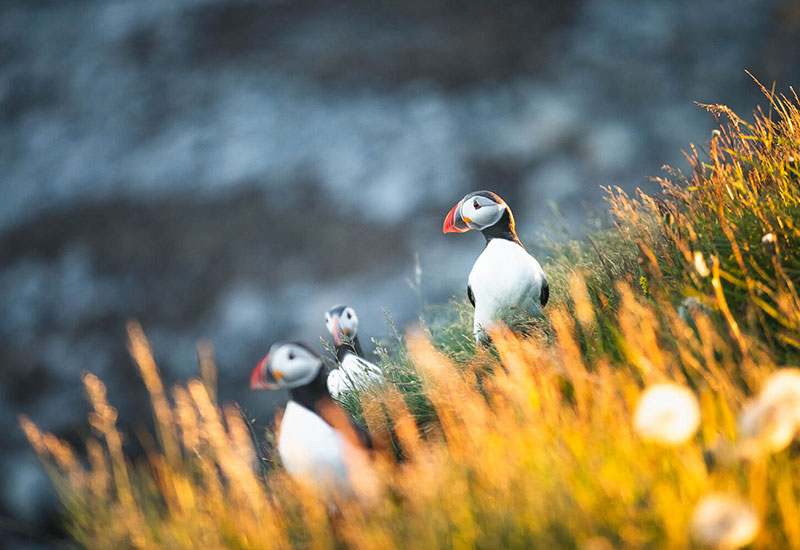 Søpapegøjerne ankommer midt i april og bliver til slutningen af august. Det er værd at bemærke, at omkring 60 % af verdens lundebestand yngler i Island – så du er det helt rigtige sted, hvis du vil opleve disse sjove og elskelige fugle.